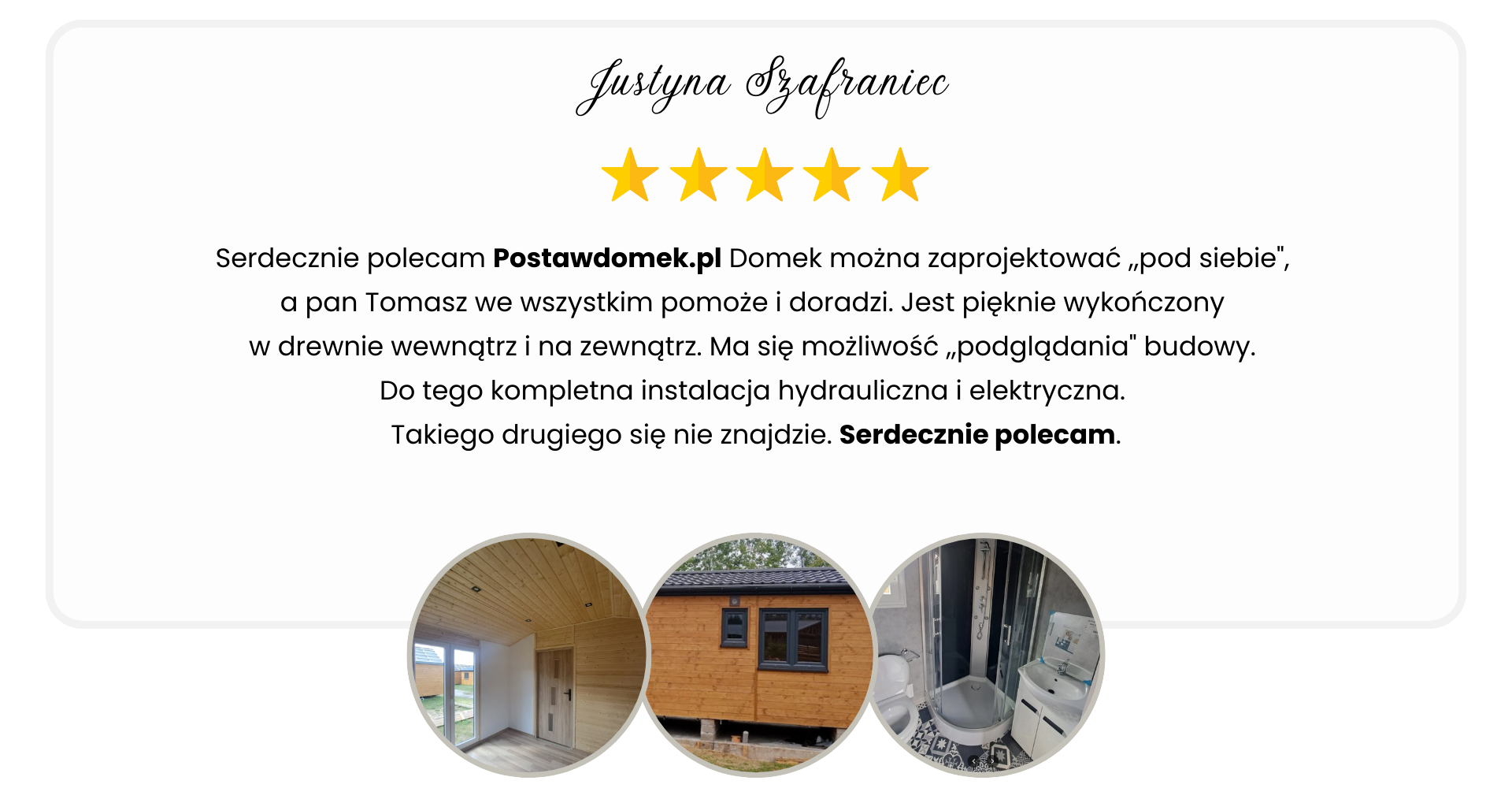 Opieramy się w pracy na zdobytym doświadczeniu. Pilnie przyglądamy się także innowacjom i nowym rozwiązaniom technicznym, które mogą jeszcze bardziej poprawić komfort korzystania z naszych domków.